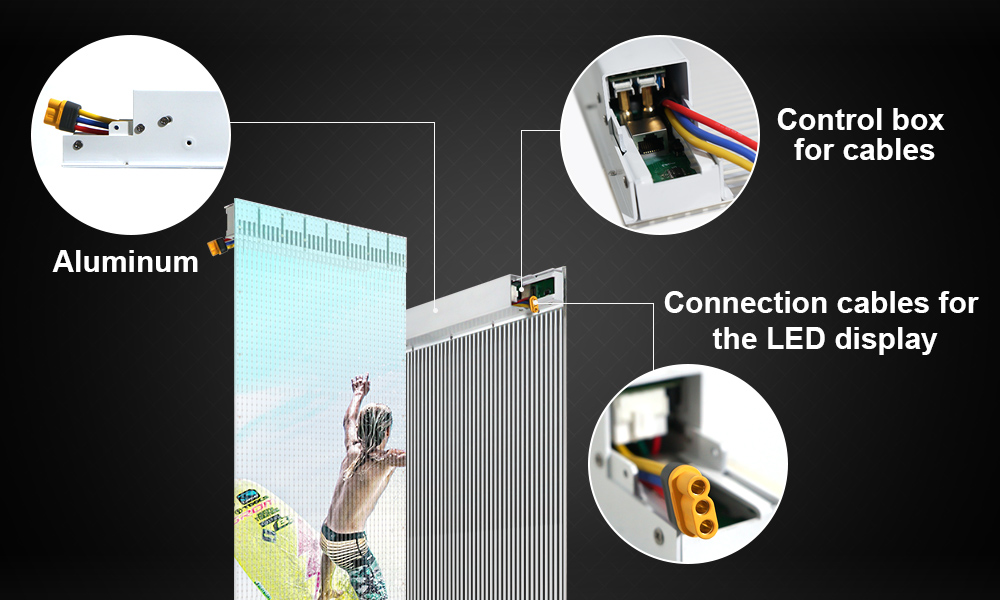 يتم ربط الشاشات من خلال لوحة شفافة، ويتم ربط صناديق الطاقة من خلال التشكيلات الجانبية
