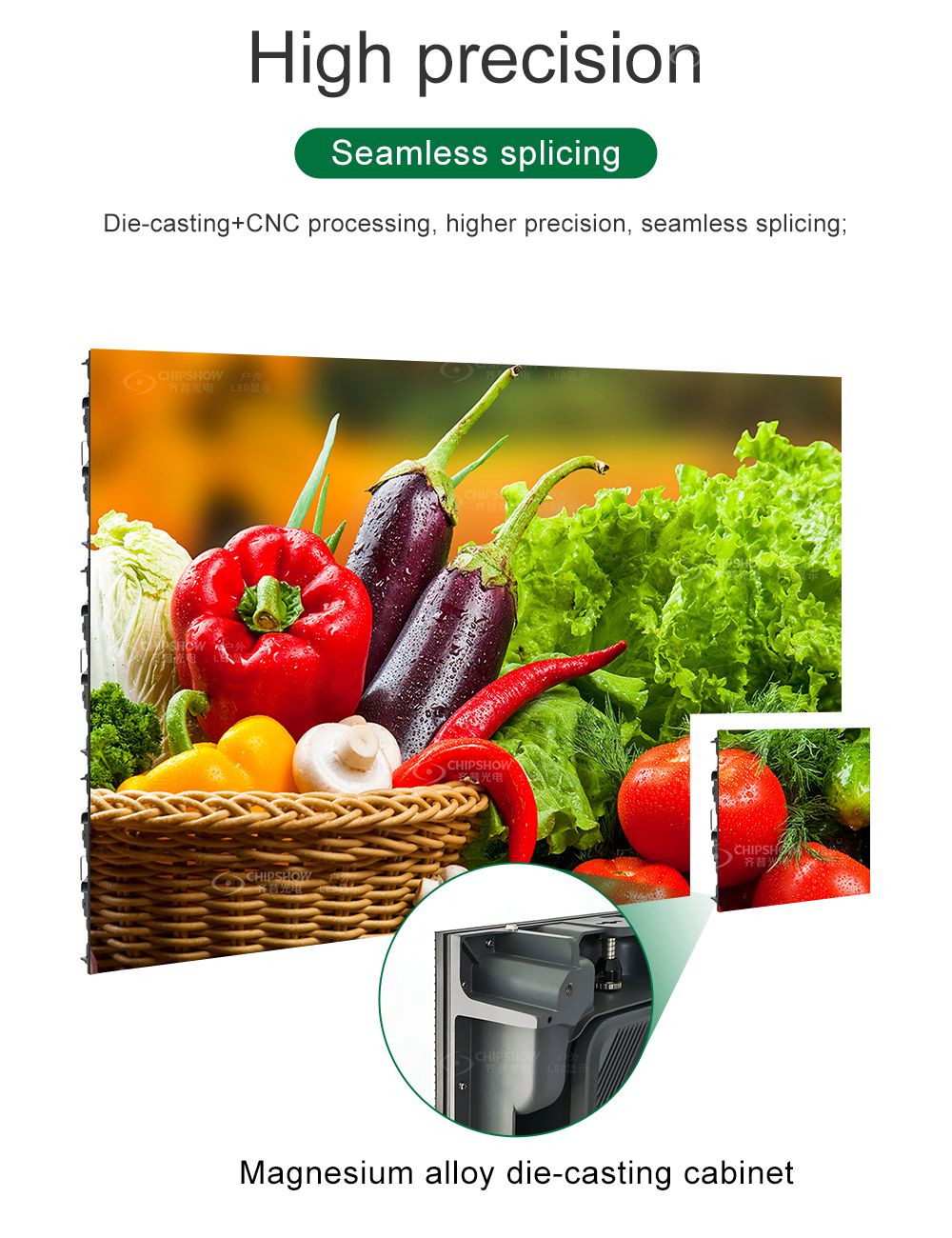 1. خزانة ألومنيوم مصبوبة عالية الدقة، نحيفة للغاية وخفيفة الوزن، 500 * 500 ≥ 7.5 كجم/خزانة، بسمك 90 مم فقط؛ 2. يمكن خلط الخزانات 500X500/500X1000mm وتجميعها لإنشاء مجموعة متنوعة من الأشكال؛ 3. تستخدم كل من الخزانات 500 × 500 مم و500 × 1000 مم صندوق تحكم صغير بسيط من نفس الطراز ويمكن مشاركتهما، مما يوفر وقت التثبيت والمعايرة؛ 4. قفل منحني اختياري، قادر على ربط الشاشات الكبيرة مع حدبة -10°~15°، زاوية 90°، إلخ؛ 5. تصميم قفل الزر المعياري يسمح بالتجميع والتفكيك والصيانة السريعة في غضون 5 ثوانٍ؛ 6. يمكن للوحدة المغناطيسية الاختيارية تحقيق التجميع الكامل والتفكيك والصيانة للوحدة ومصدر الطاقة الأمامي. 7. العمل في صمت: بدون مروحة، الضوضاء ≥ 40 ديسيبل؛ لا يؤثر على التأثير السمعي والبصري في الموقع؛ 8. معايرة نقطة بنقطة: معايرة توازن اللون الأبيض نقطة بنقطة لضمان اتساق وتوحيد العرض؛ 9. خطة تحسين الخلفية للشاشة الكبيرة؛ تحديث عالي، SLR، التقاط مصراع الكاميرا 1/3000S، بدون وميض، بدون خط مسح شبحي؛ 10. ملاعب البكسل العالمية الداخلية والخارجية مع P1.9/2.6/2.9/3.9/4.8 ets؛ متخصصون في تقديم حلول عرض LED شاملة للأحداث والمؤتمرات والمسرح وإطلاق المنتجات والعقارات.