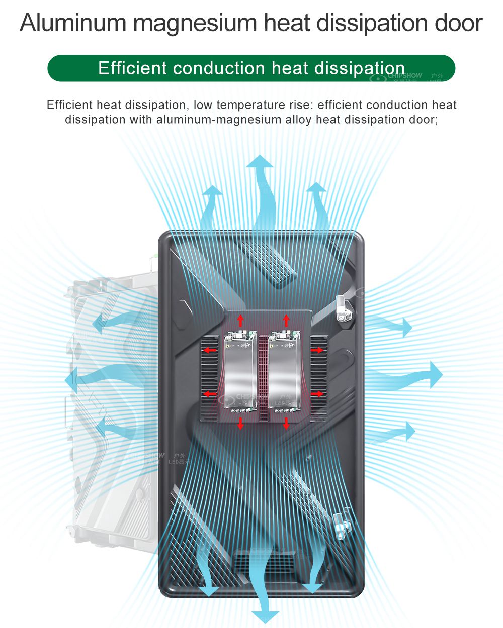 1. استهلاك منخفض للطاقة، ارتفاع منخفض في درجة الحرارة، توفير الطاقة، متوسط استهلاك الطاقة ≤180 واط/ م ؛ 2. وحدة مغلقة بالكامل؛ لا يتطلب تفكيك الوحدة وتجميعها أي براغي ويمكن تفكيكها بسرعة ; 3. يعتمد الاتصال بين الوحدة والصندوق على حلقة جلدية جانبية مقاومة للماء، والتي تتمتع بموثوقية عالية مقاومة للماء ; 4. صندوق من الألومنيوم المصبوب بالكامل، خفيف الوزن للغاية ورقيق؛ الوزن ≤ 29 كجم، السُمك ≤ 105 مم 5. مستوى مقاومة عالية للماء، الصندوق بأكمله هو IP65 ; 6. مجالات التطبيق: وسائل الإعلان الخارجية، والمشاريع الحكومية والمؤسسية، والسياحة الثقافية، والمسابقات الرياضية، والترويج للصورة، والعقارات التجارية، وما إلى ذلك.