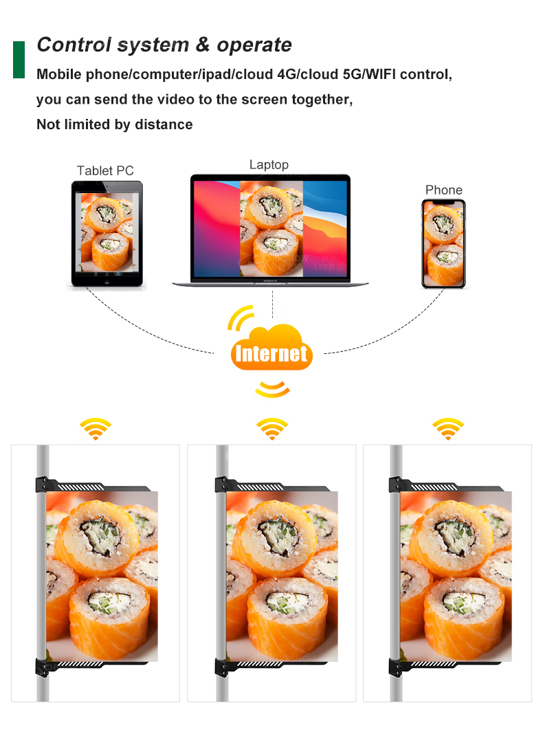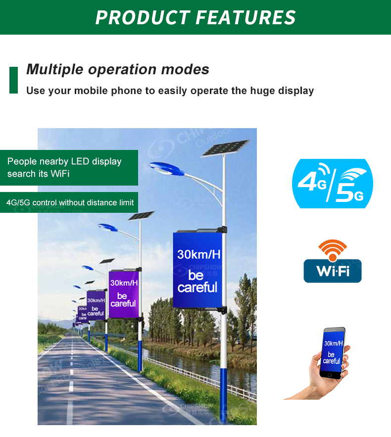 4 جهاز تحكم عن بعد لشبكات 4G/5G: مع سلسلة C-Fit-Pole، يمكنك إنشاء شبكة واسعة النطاق حيث لا يكون عدد شاشات LED القطبية محدودًا؛ بالإضافة إلى ذلك، فإن نقل البيانات عالي السرعة يجعل من السهل إرسال الرسوم المتحركة ومقاطع الفيديو والصور عالية الدقة؛