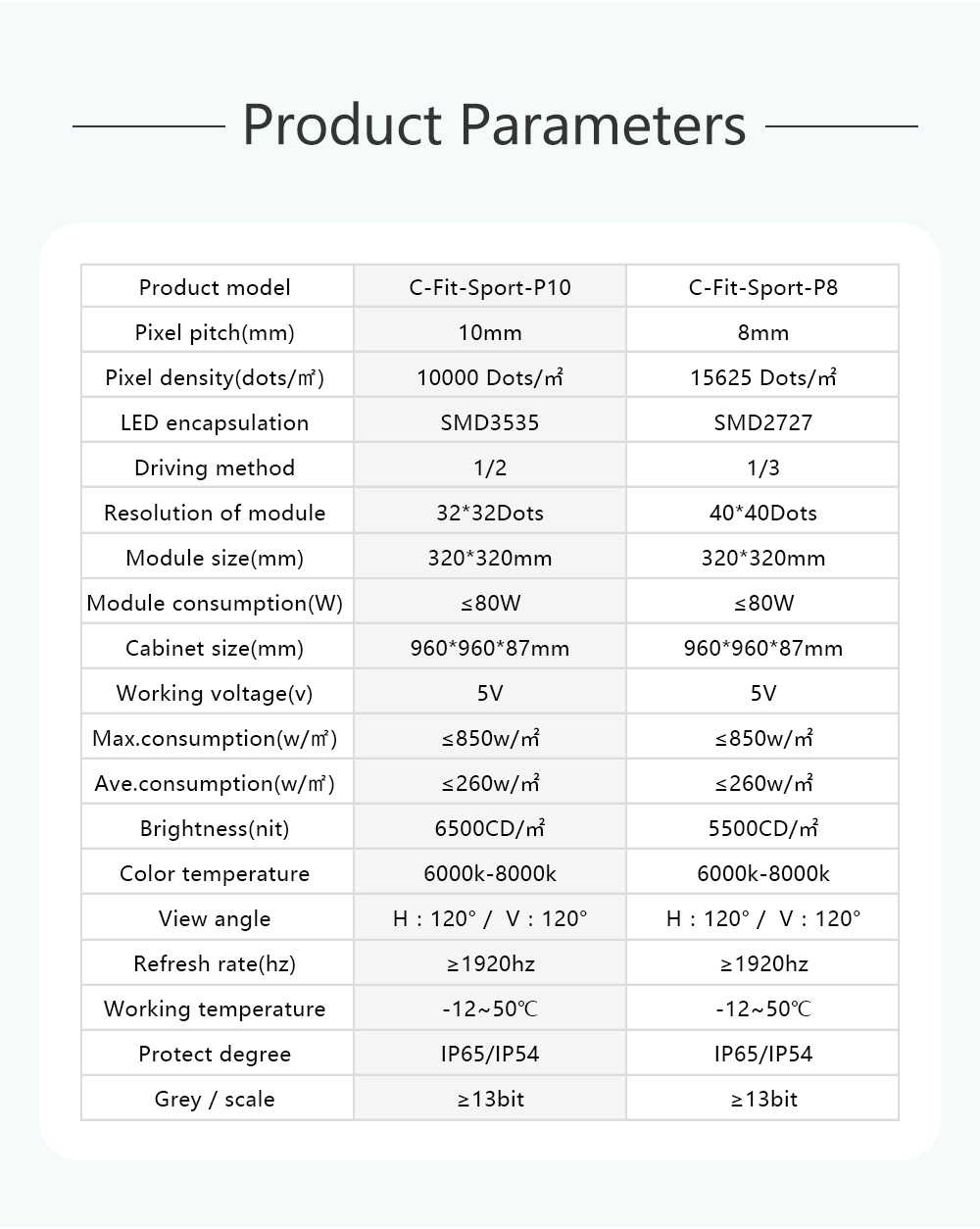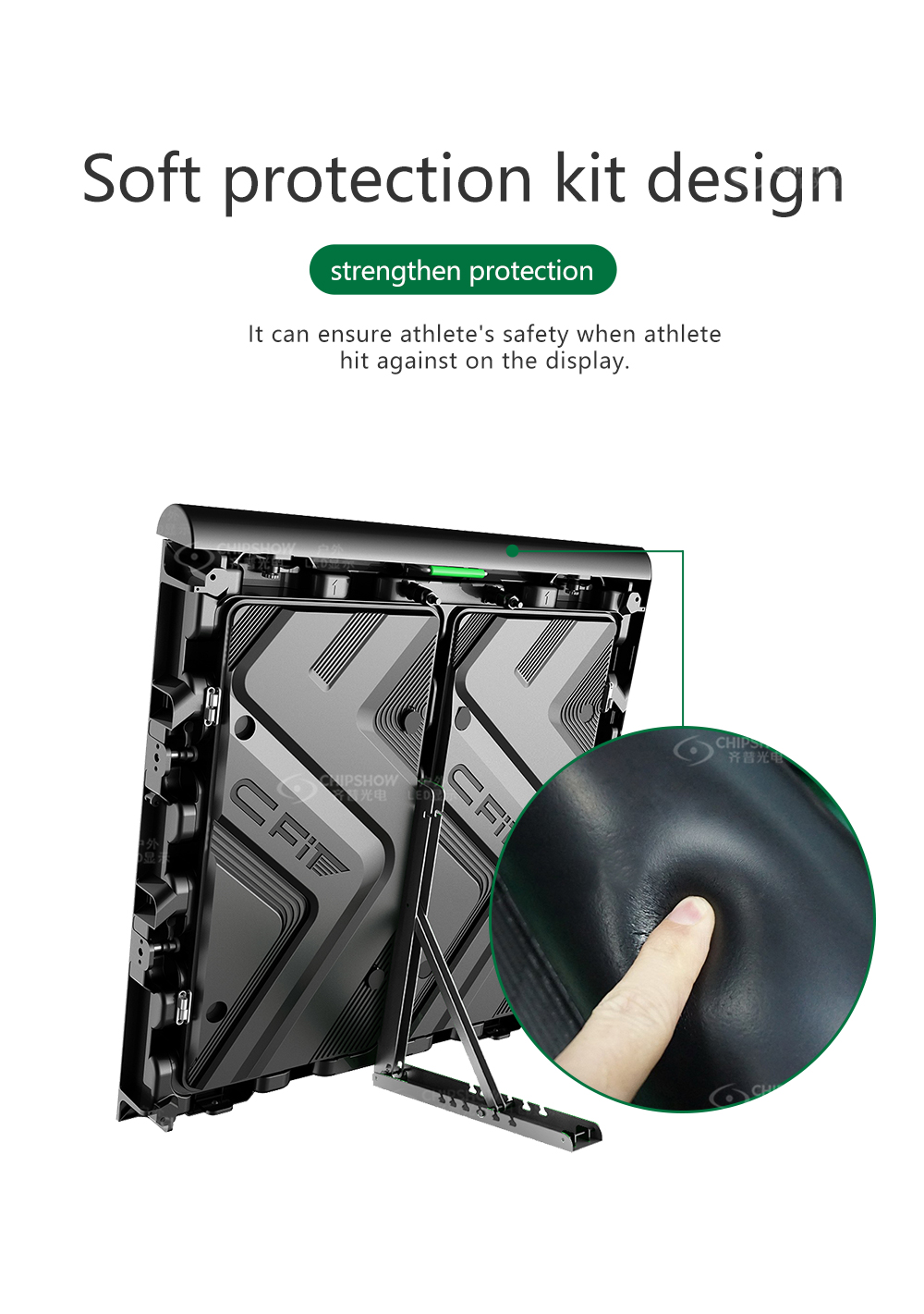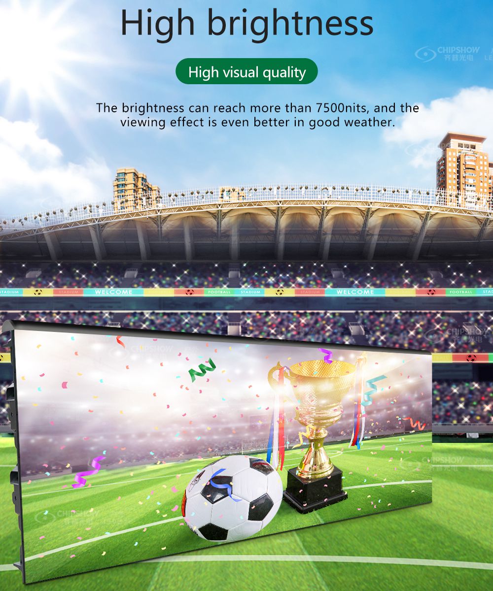 تعتمد شاشة LED P8، P10 C-Fit-Sport تقنية الاستبدال الافتراضية. يمكن نقل الإعلانات الافتراضية إلى بلدان مختلفة بدلاً من الإعلانات الحقيقية في الملعب.