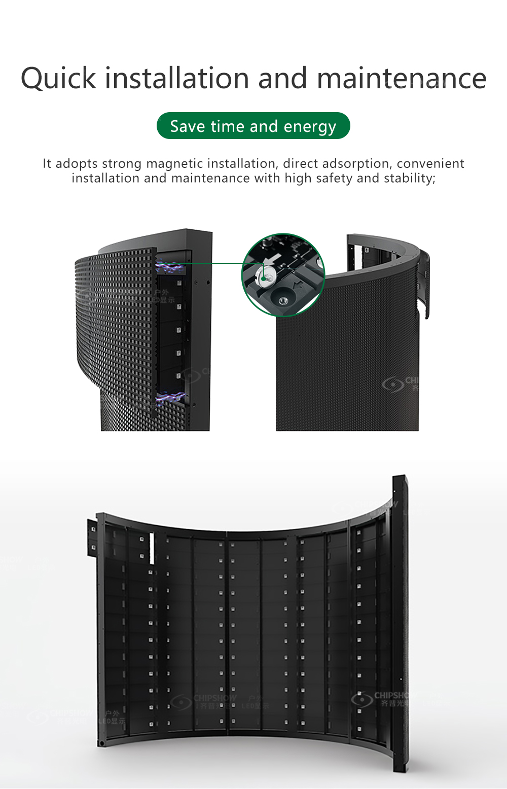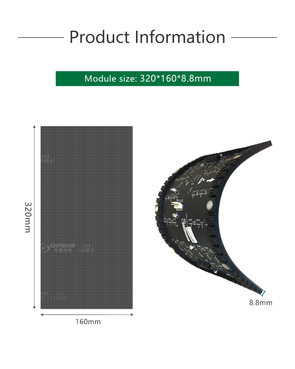 2 بسبب اعتماد مواد خاصة وتقنيات تصنيع متقدمة، فإن وحدات LED المرنة تكون رفيعة للغاية، وخفيفة الوزن للغاية؛ وهذا يجعل من السهل عليك إنشاء مجموعة متنوعة من تأثيرات العرض (مثل التدحرج والانحناء والتأرجح)؛رقم الصنف.: