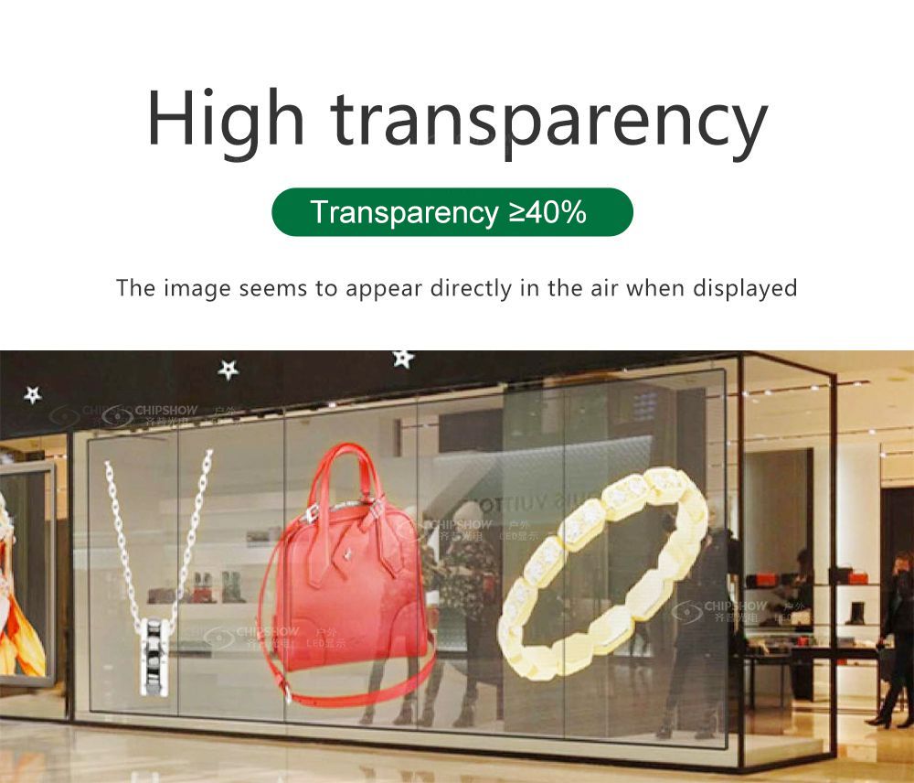 2: الشفافية العالية: تصل نسبة الشفافية إلى أكثر من 40%؛ عند عرض الشاشة، تبدو الصور وكأنها تظهر في الهواء؛