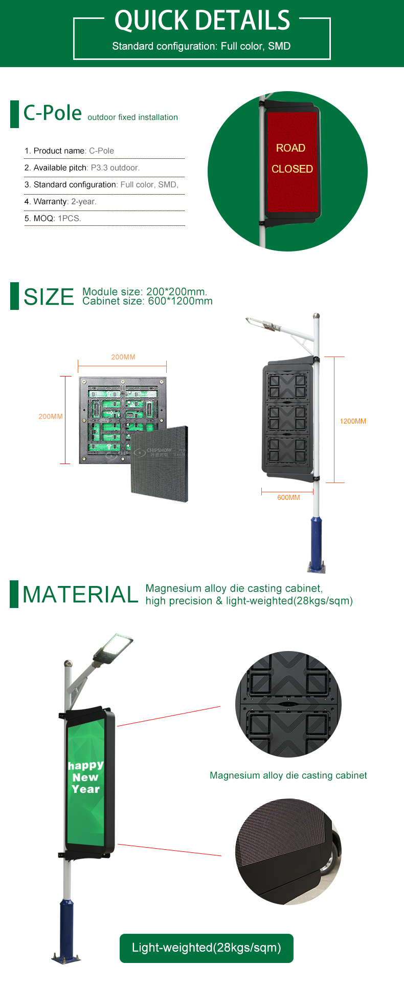 شاشة LED لأعمدة إنارة الشوارع الخارجية C-Pole (P3.33)
