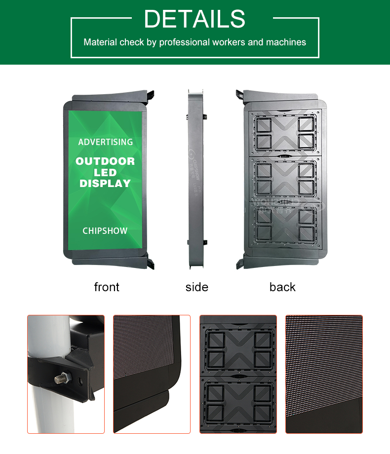 سمات: 1 سطوع عالي - كل وحدة LED تستخدم خرزات LED مع مرشحات عدسة بصرية؛ يمكن أن يصل مستوى السطوع إلى 8000 قرص مضغوط /㎡؛ 2 موفرة للطاقة - مقارنة بشاشات العرض LED ذات المواصفات المماثلة، يمكن لهذه السلسلة توفير أكثر من 65% من الطاقة؛ 3 اختراق فائق القوة: يمكنه إظهار صور واضحة للسائقين، حتى لو كانوا يقودون بسرعة 120 كيلومترًا في الساعة، في مسافة بعيدة تزيد عن 210 أمتار، أو في طقس ضبابي؛ 4 حماية عالية - كل وحدة LED وكل خزانة مغلقة بالكامل، والجزء الأمامي والخلفي من الشاشة حاصلان على تصنيف IP65؛ 5 الصيانة السريعة - سيوفر لك تصميم التجميع والتفكيك البسيط والسريع الكثير من الوقت بشكل ملحوظ أثناء التثبيت والصيانة؛ 6 خفيفة للغاية: وزن كل خزانة جاهزة أقل من 35 كجم/م2، وبالتالي، ليس لديها متطلبات صارمة بشأن قوة الهيكل الداعم، وهي مناسبة تمامًا كشاشات عرض LED كبيرة على الطرق السريعة؛ 7 موثوقية عالية: لضمان موثوقية الشاشة واستقرارها في ظل جميع أنواع الظروف الجوية السيئة، تعتمد الشاشة على وحدات إمداد الطاقة وخرزات LED عالية الجودة وIC؛