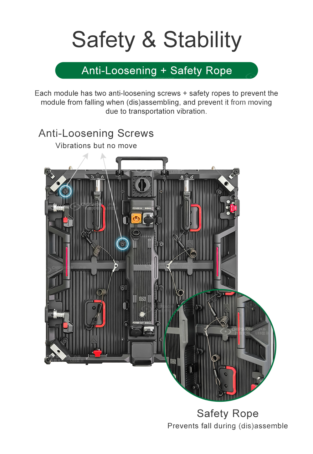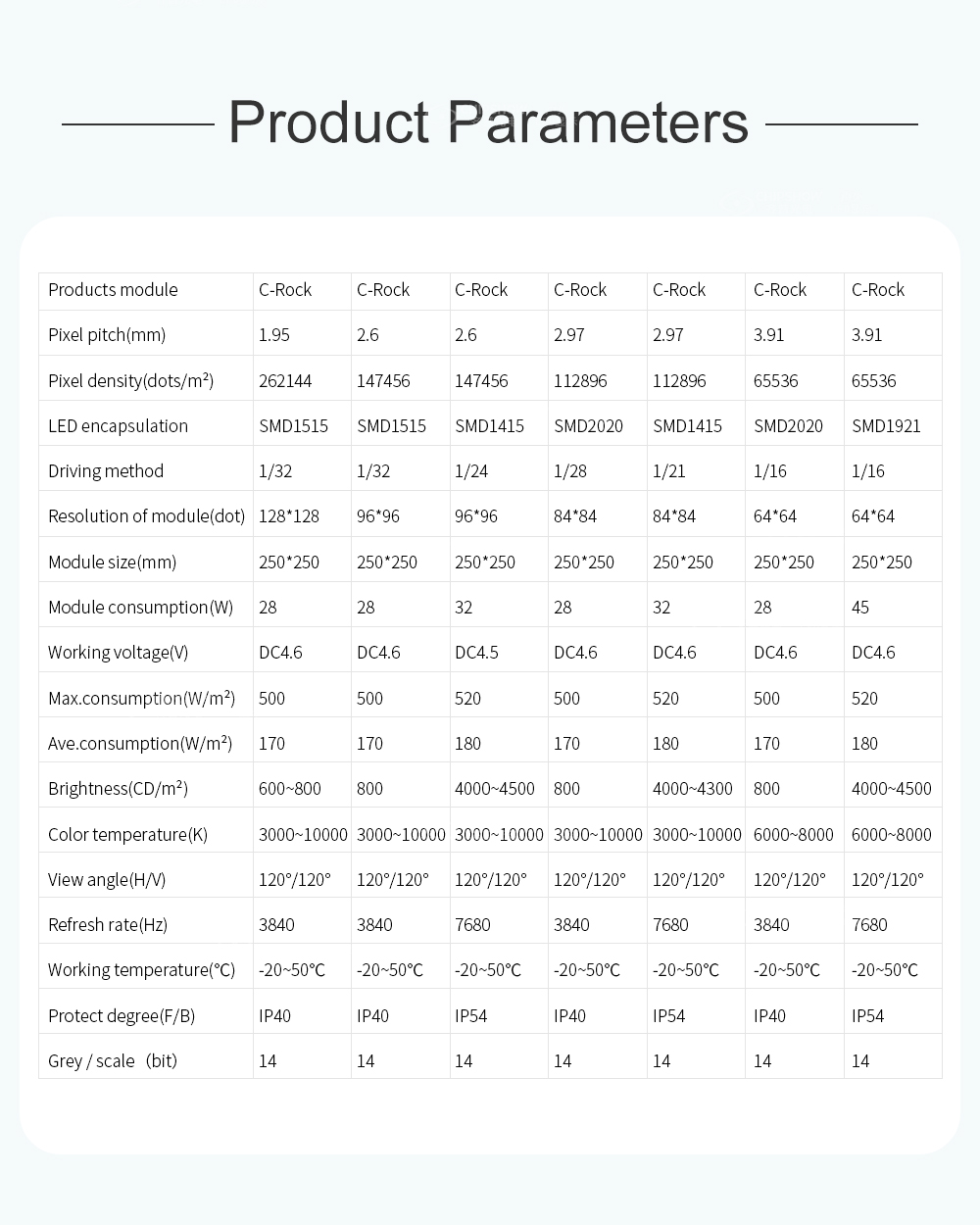 10. قابلة للتطبيق للاستخدام الداخلي والخارجي: كحل شامل لشاشة LED للعروض المسرحية والمؤتمرات والفعاليات، تتوفر سلسلة C-Rock للاستخدام الداخلي بقياسات بكسل 1.95 مم و2.604 مم و3.91 مم؛ وتتوفر سلسلة C-Rock للاستخدام الخارجي بقياسات بكسل 2.604 مم و2.97 مم و3.9 مم و4.8 مم؛