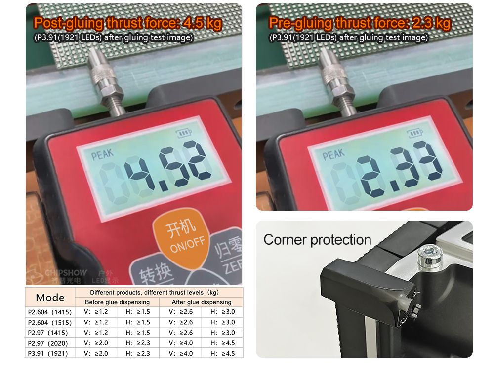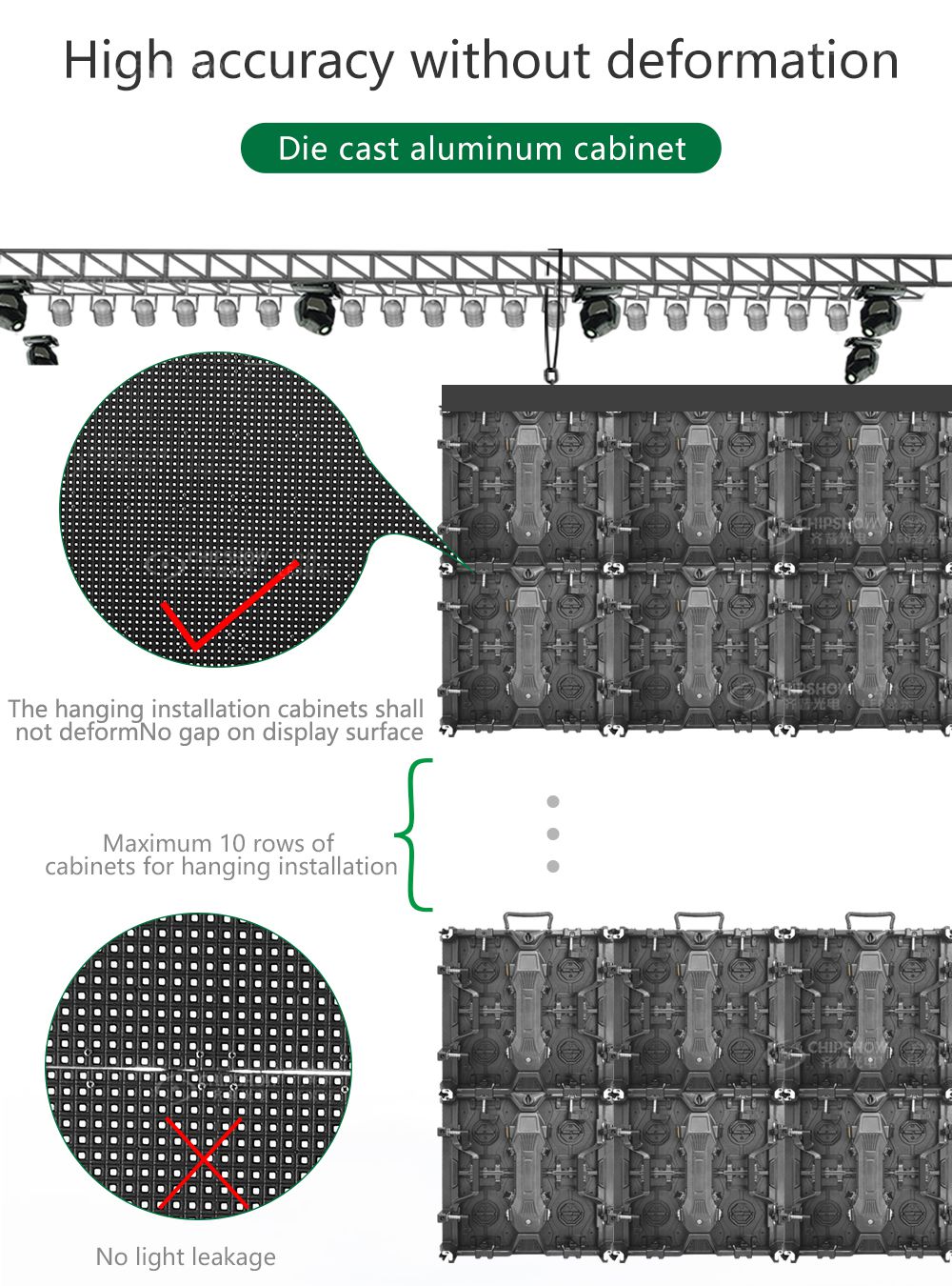 1 تسطيح ممتاز، مقاومة عالية للتشوه: تعتمد سلسلة C-Shine-Plus (GOB) على خزانات ألومنيوم مصبوبة عالية القوة (درجة سبائك الألومنيوم: ADC-12) ذات تسطيح جيد ومقاومة جيدة للتشوه؛ على الرغم من أن الشاشة يتم تجميعها وتفكيكها بشكل متكرر، إلا أن الخزانات يمكن أن تظل مسطحة؛