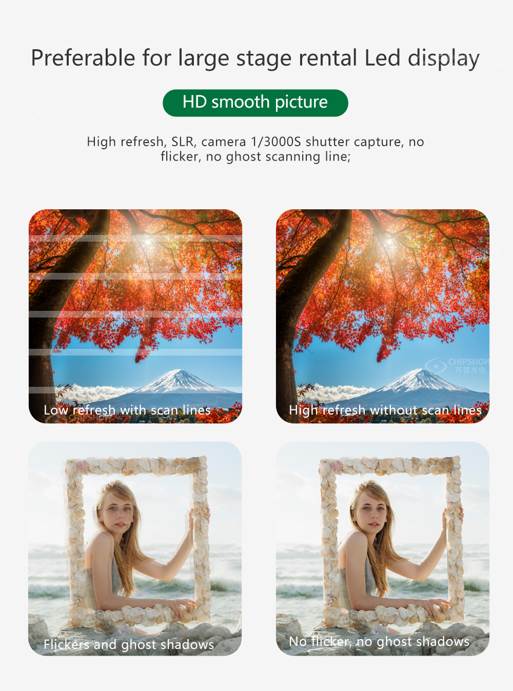 يضمن معدل التحديث 3840 هرتز صورًا سلسة وخالية من خطوط المسح لتقنية IMAG والبث المباشر عبر الإنترنت
