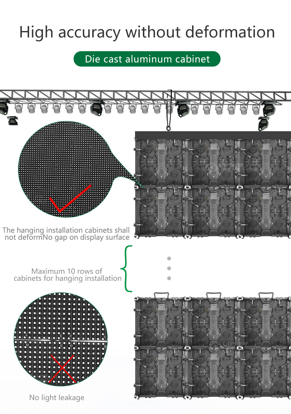 بوزن 7.5 كجم فقط، يتم تعليقها بأمان من دعامات المسرح القياسية، مما يقلل الحاجة إلى ترقيات هيكلية مكلفة