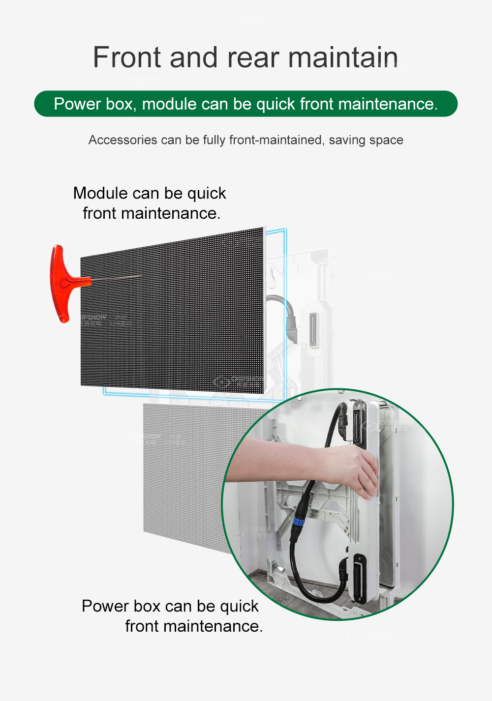 C-Max (p1.25/1.37/1.53/1.66/1.86/2/2.5/3/3.3/4) هو خيارنا الموصى به عندما يتعلق الأمر بشاشات LED للاستخدام الداخلي؛ هذه السلسلة بسيطة ودائمة. فهي تحتوي على نفس نسبة مصدر الفيديو الموجودة في شاشات LCD، وبالتالي يمكن أن تحل محل شاشات LCD مباشرةً. مزايا: 1. حجم الخزانة 640 مم * 480 مم. يمكن تجميعها في شاشات كبيرة 4:3/16:9. 2. يتم تركيبه مباشرة على الحائط، مما يوفر المساحة والعمل. 3. الخزانة مصنوعة من الألومنيوم المصبوب، وهو خفيف الوزن. 4. التثبيت على الحائط والخدمة الأمامية للوحدات ووحدات إمداد الطاقة والبطاقات. 5. التسطيح، سهلة التركيب والتفكيك. 6. تعتمد الخزانة أسلاك داخلية بسيطة، مما يساعد المستخدمين على ربط الخزانات. 7. تصميم مثالي للوحة المصباح PCB، IC المتطور، يظهر تدرج رمادي عالي، تحديث، وسطوع. 8. تبديد جيد للحرارة، بدون ضوضاء، توفير الطاقة، وحماية البيئة. التطبيقات: يستخدم على نطاق واسع في العرض التجاري، والإعلانات الثابتة الداخلية، والقاعة، وقاعة المؤتمرات، والولائم، والدهليز، وعروض المعارض، والنقل، والاستوديو، والتحكم في الأوامر.