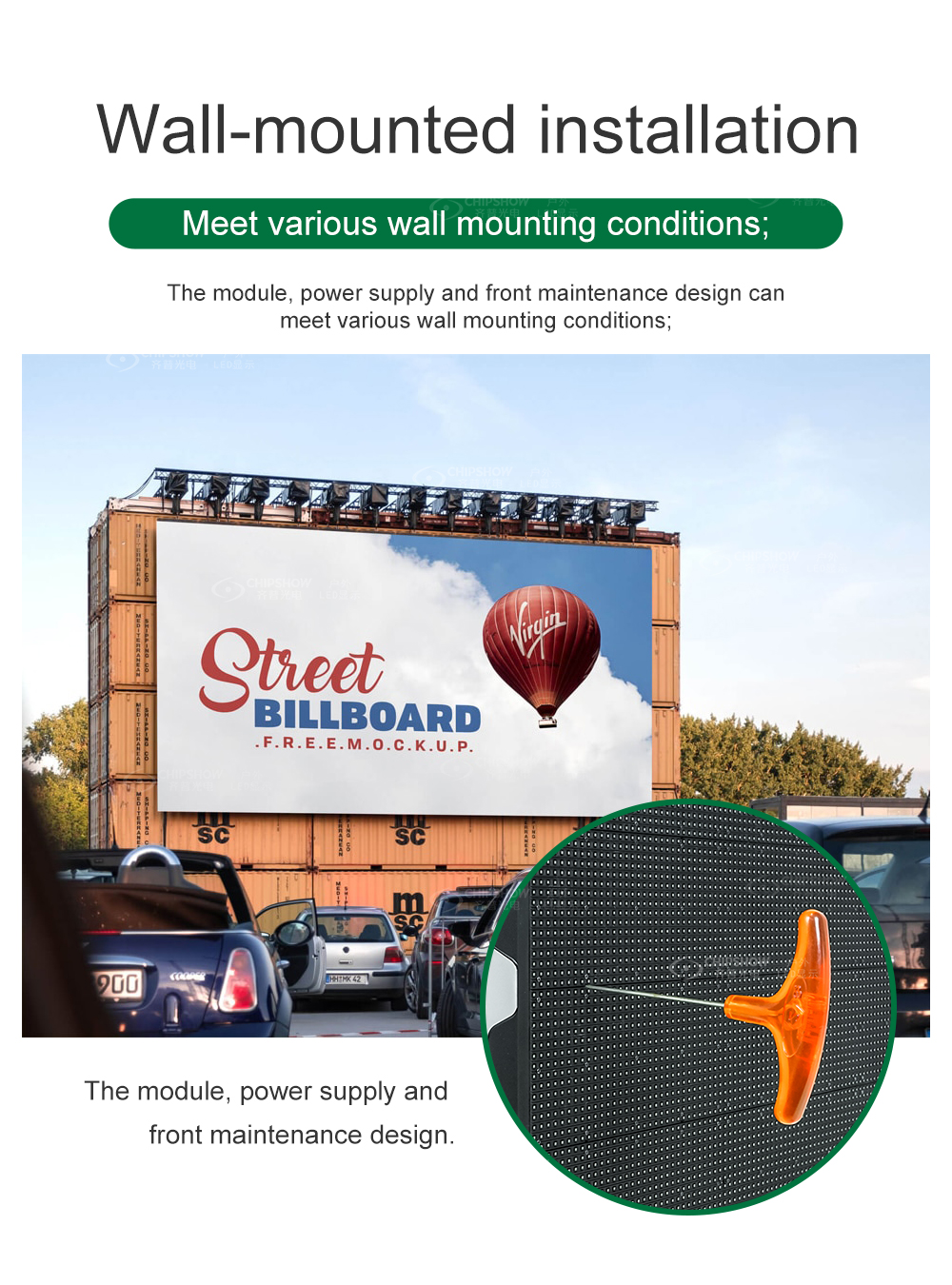 3 تركيب قابل للتركيب على الحائط: تدعم الوحدات ووحدات إمداد الطاقة وأنظمة التحكم الخدمة الأمامية، مما يوفر مساحة التثبيت بشكل كبير؛