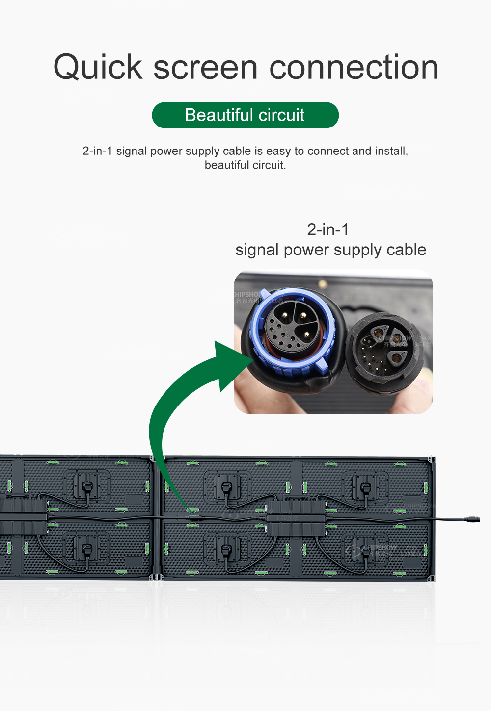 5 اتصال سريع للشاشة: تعتمد الوحدات على كابلات طاقة الإشارة 2 في 1 لراحة الاتصال السريع والتثبيت؛ بالإضافة إلى ذلك، فإن الأسلاك مرتبة نسبيًا أيضًا؛