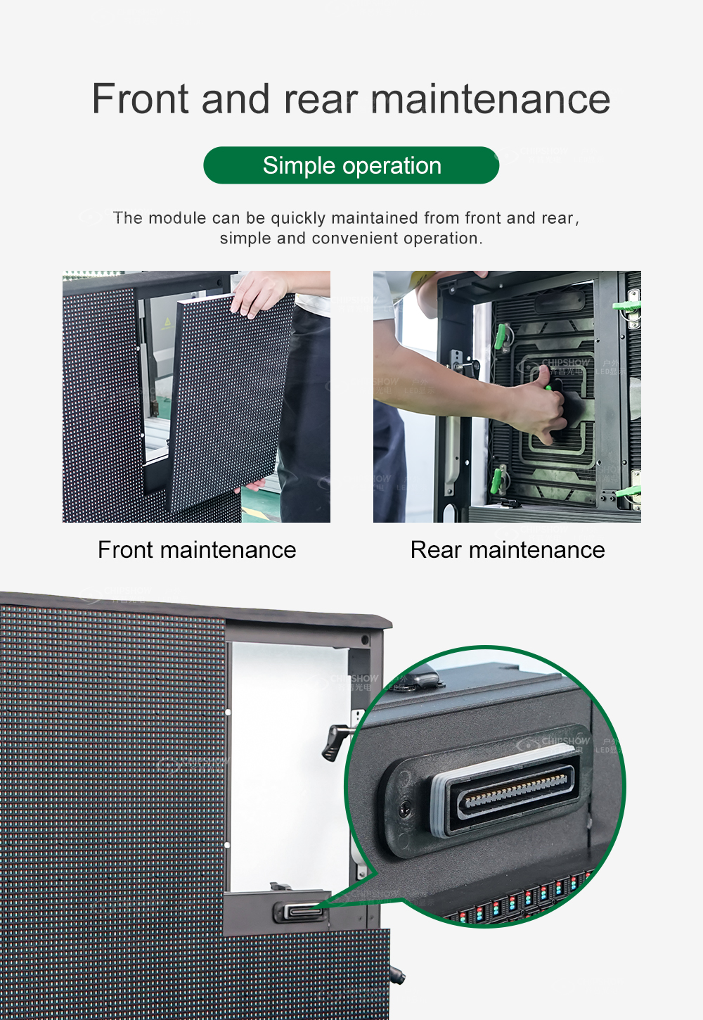 4 تدعم كل وحدة LED الخدمة الأمامية والخلفية، مما يجعل العملية سهلة أثناء التثبيت والصيانة اللاحقة؛