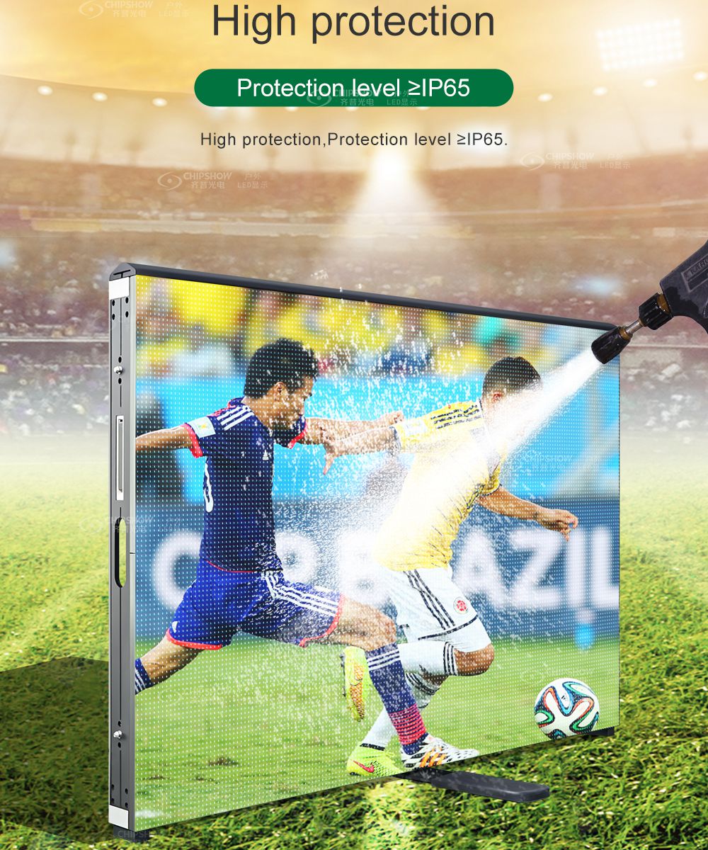 تعتمد شاشة LED P8، P10 C-Fit-Sport تقنية الاستبدال الافتراضية. يمكن نقل الإعلانات الافتراضية إلى بلدان مختلفة بدلاً من الإعلانات الحقيقية في الملعب. مزايا: 1. شاشة LED محيطية ذكية. 2. تقنية الاستبدال الافتراضية، مدعومة بـ IR LED. 3. تصميم خزانة التركيب والصيانة السريع. 4. تصميم مجموعة الحماية الناعمة لحماية اللاعبين من الأذى. 5. نظام تبديد الحرارة بالضغط السلبي، يضمن المزيد من الموثوقية. 6. متاح للمراقبة عن بعد عن طريق التطبيق .