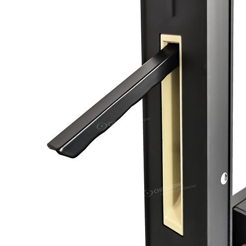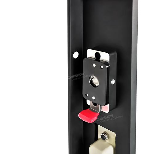 1 تم تجهيز كل خزانة بأقفال سريعة يسارًا ويمينًا، ودعامة دوارة قابلة للتعديل بزاوية 90 درجة لتسهيل التجميع السريع لشاشة العرض المحيطية؛