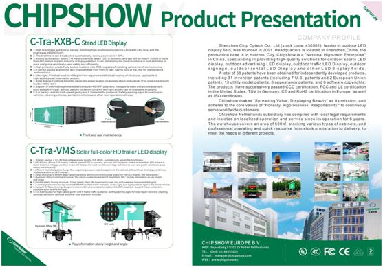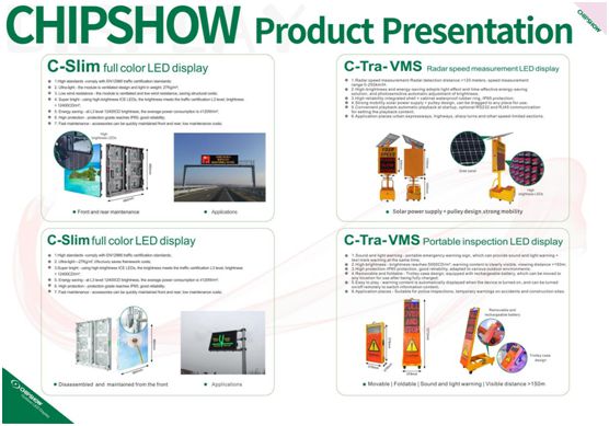 ستعرض Chipshow بعض حلول شاشات LED لحركة المرور المتقدمة والمستقبلية (C-Tra-KXB-C، C-Tra-VMS، C-Slim، C-Tra-VMS).