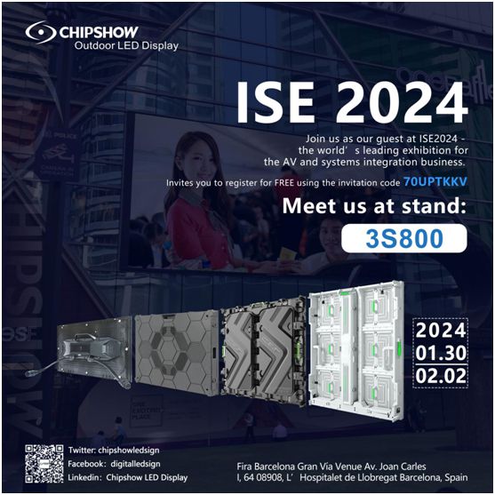 أعلنت شركة Chipshow LED Display، إحدى الشركات الرائدة في تصنيع شاشات العرض LED من الصين، أنها ستعرض مجموعتها الكاملة (في الهواء الطلق، وداخل المباني، والتأجير، والمسرح، والشفاف، والرياضة) في معرض برشلونة ISE 2024 في الفترة من 30 يناير إلى 2 يناير . فبراير 2024. جناح رقم 3S800.