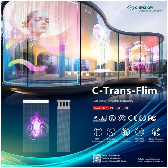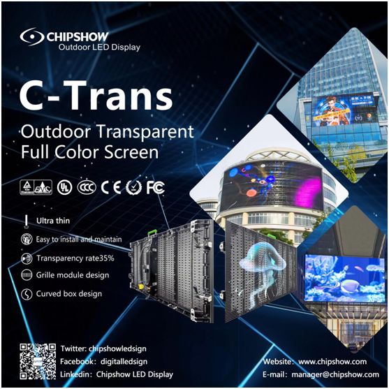 لدى Chipshow أيضًا سلسلة شاشات عرض LED شفافة/مجسمة خاصة بها. شاشة LED ثلاثية الأبعاد مناسبة جدًا للعرض التجاري.