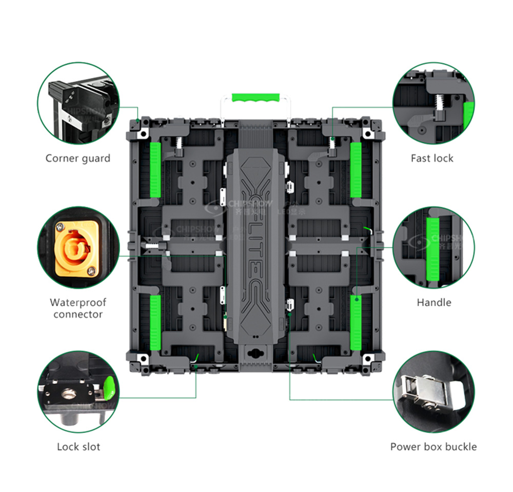 التسطيح العالي : يستخدم C-Lite-Plus P1.56 خزانة ألومنيوم مصبوبة عالية القوة ADC12، والتي لن تتشوه حتى في حالة التفكيك والتجميع المتكرر، مما يضمن استواء الشاشة.