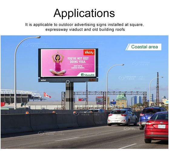 ولذلك، فإن C-Slim عبارة عن شاشة LED مصممة خصيصًا للاستخدام الخارجي. إنها مناسبة جدًا لشاشات المرور أو شاشات الإعلانات. فيما يلي بعض سيناريوهات التثبيت.