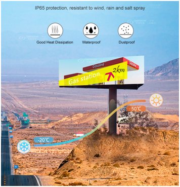 تعد لافتات شاشة LED أكثر كفاءة في استخدام الطاقة من أنواع العرض الأخرى ويمكن استخدامها في المواقع التي لا تكون فيها العلامات التقليدية فعالة ، مثل الأماكن الخارجية.